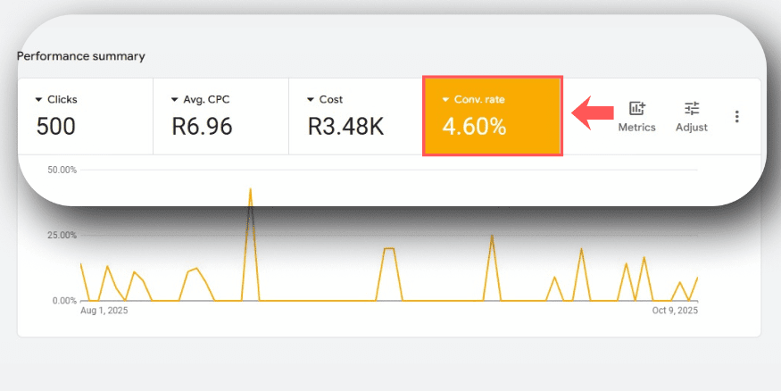 Conversion rate tells you how effective your ads and landing pages are. High CTR is good, but high conversion rate is what really drives results.