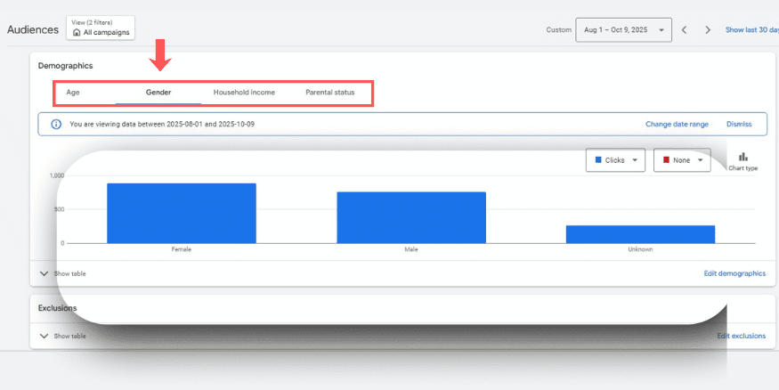 • Demographics Targeting saves your budget as you don’t waste clicks on irrelevant audiences.