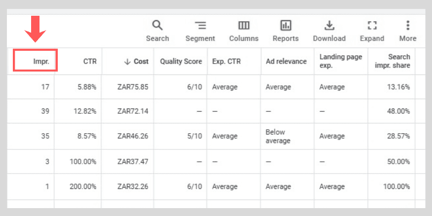 Provides a clear insight on the success of your Google Ads by comparing the number of users who saw your ad by the number of people who clicked on it.