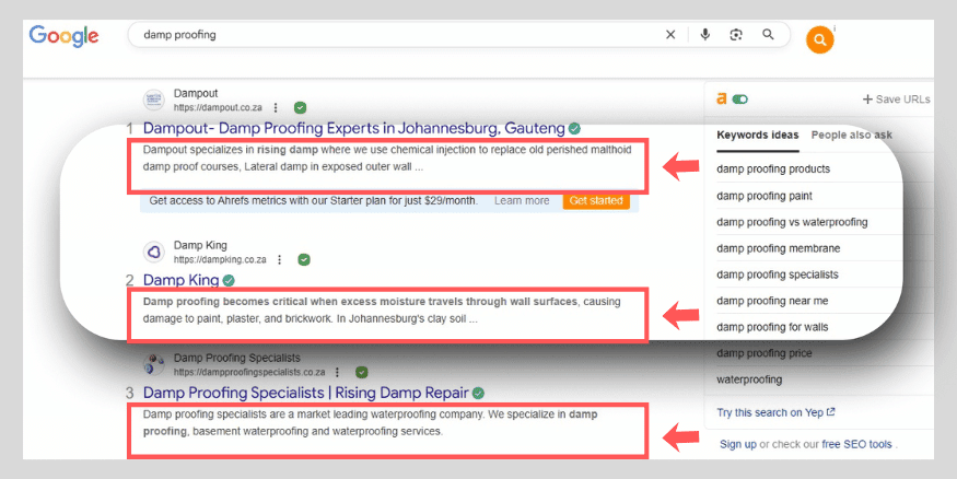 Call-To-Action encourages users to take action from your organic listing. (EG: Call Us, Click Here, Learn More)