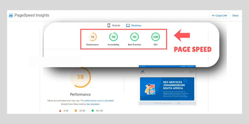 Your pages should load in under 3 seconds and have a high performance score (80–100 on PageSpeed Insights).